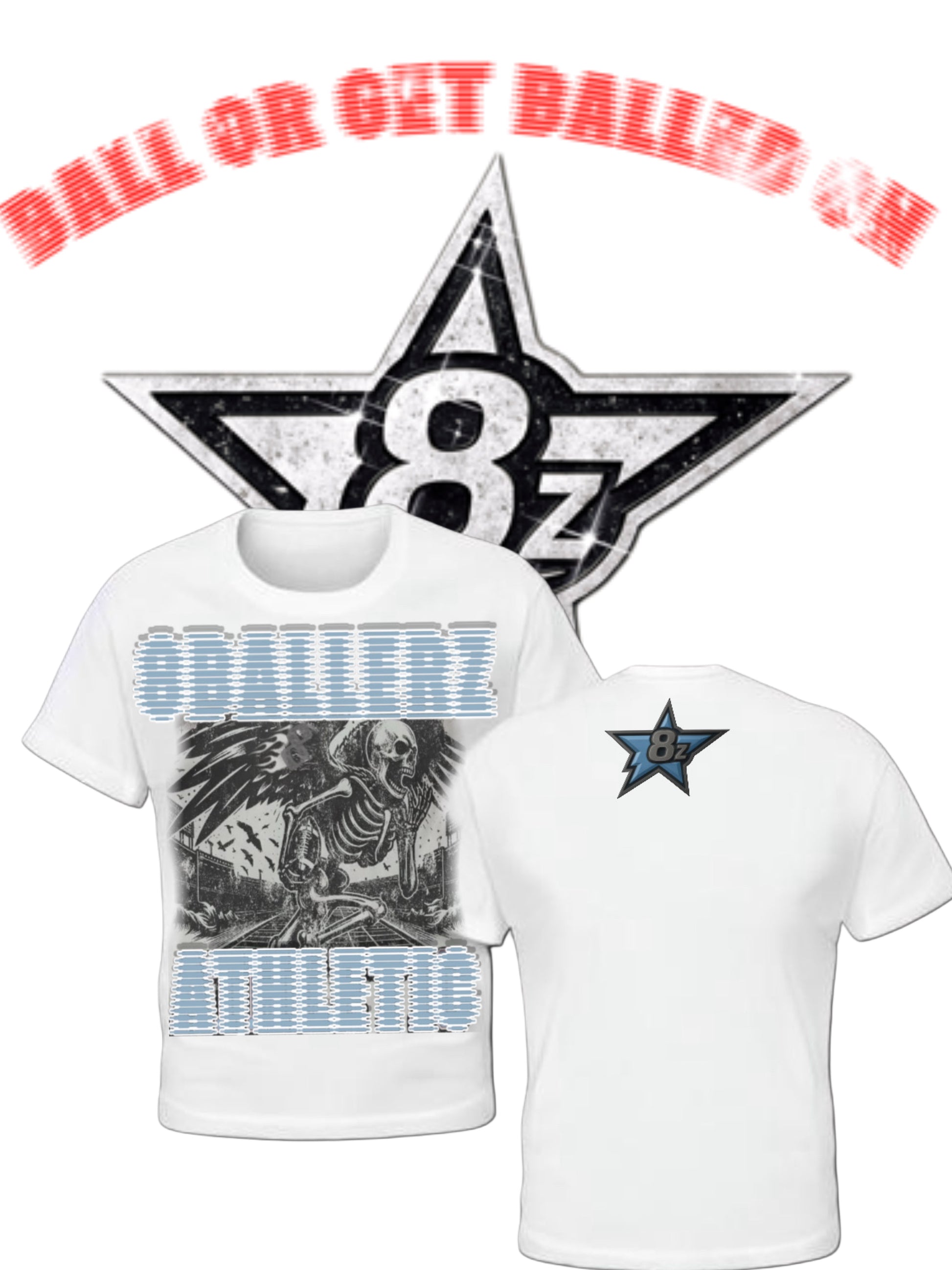 Front: Skeleton warrior design paired with “8BALLERZ ATHLETIC” text for an intense, gritty aesthetic.